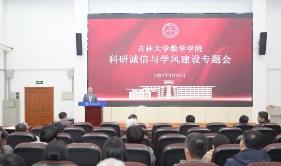 2024年9月30日,beat365中国官方网站召开全院教师科研诚信与学风建设专题会。本次会议旨在加强科研诚信与优良学风建设,规范学术行为,维护学术诚信,严明学术纪律。数学学院党委书记兼院长王春朋教授主持会议,学院150余名教师参加会议。