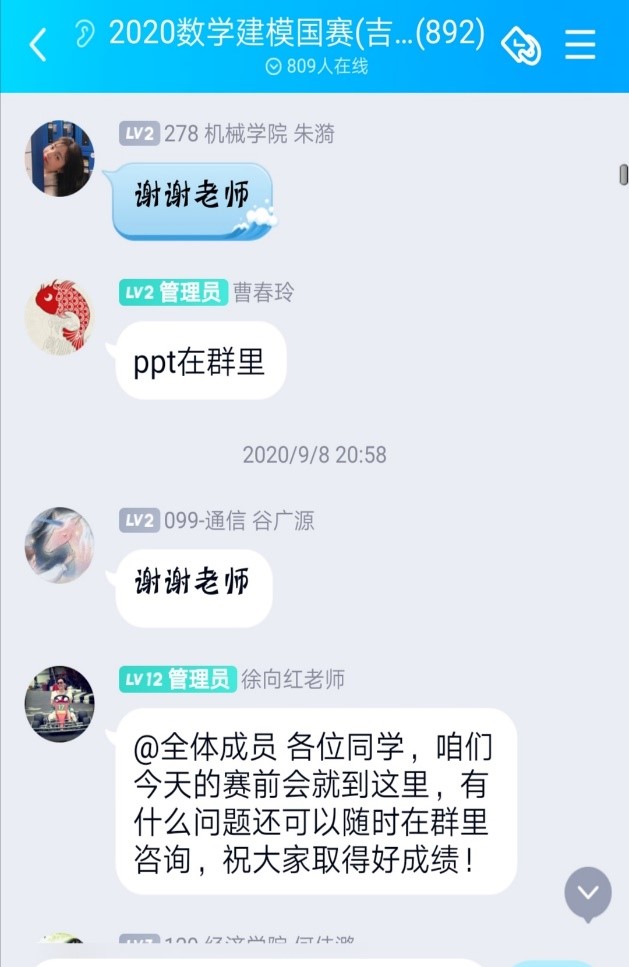 2020年9月上旬,全国大学生数学建模竞赛在即。吉林大学数学建模协会顺应参赛同学的强烈需要和竞赛管理协助的工作要求,结合常态化防疫建议,成功举办了数学建模国赛线上培训活动。