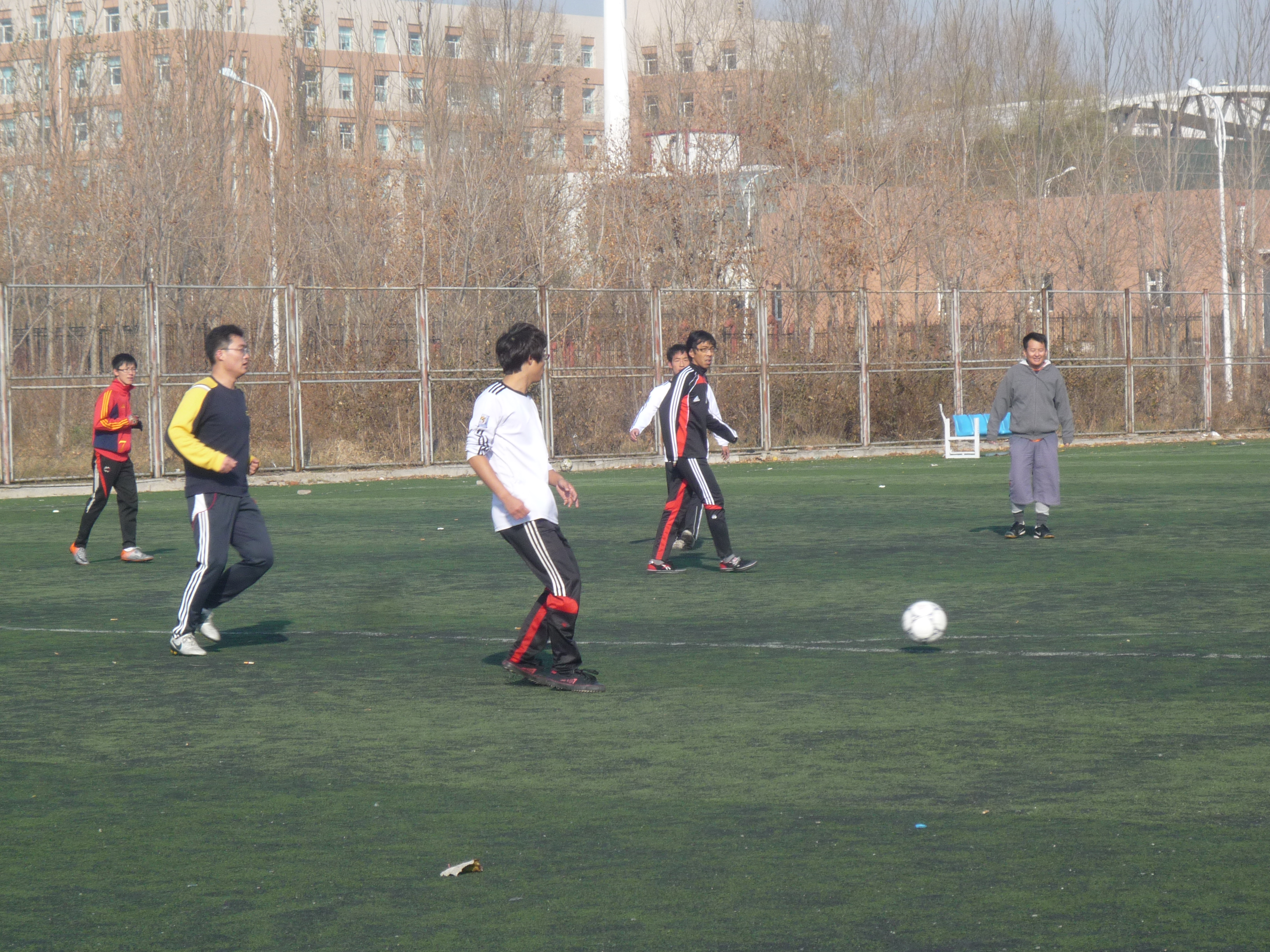 11月8日中午12点,由数学学院学生会体育部主办的班级杯足球赛决赛在足球场如期展开,数学学院党委副书记兼副院长赵任亲临现场观看。决赛双方分别为,由崔帅,田间,申川三位学工办老师和数学学院侯秉喆副教授、张凯副教授率领的老师及研究生联队,以及数学学院2010级数力统联队。