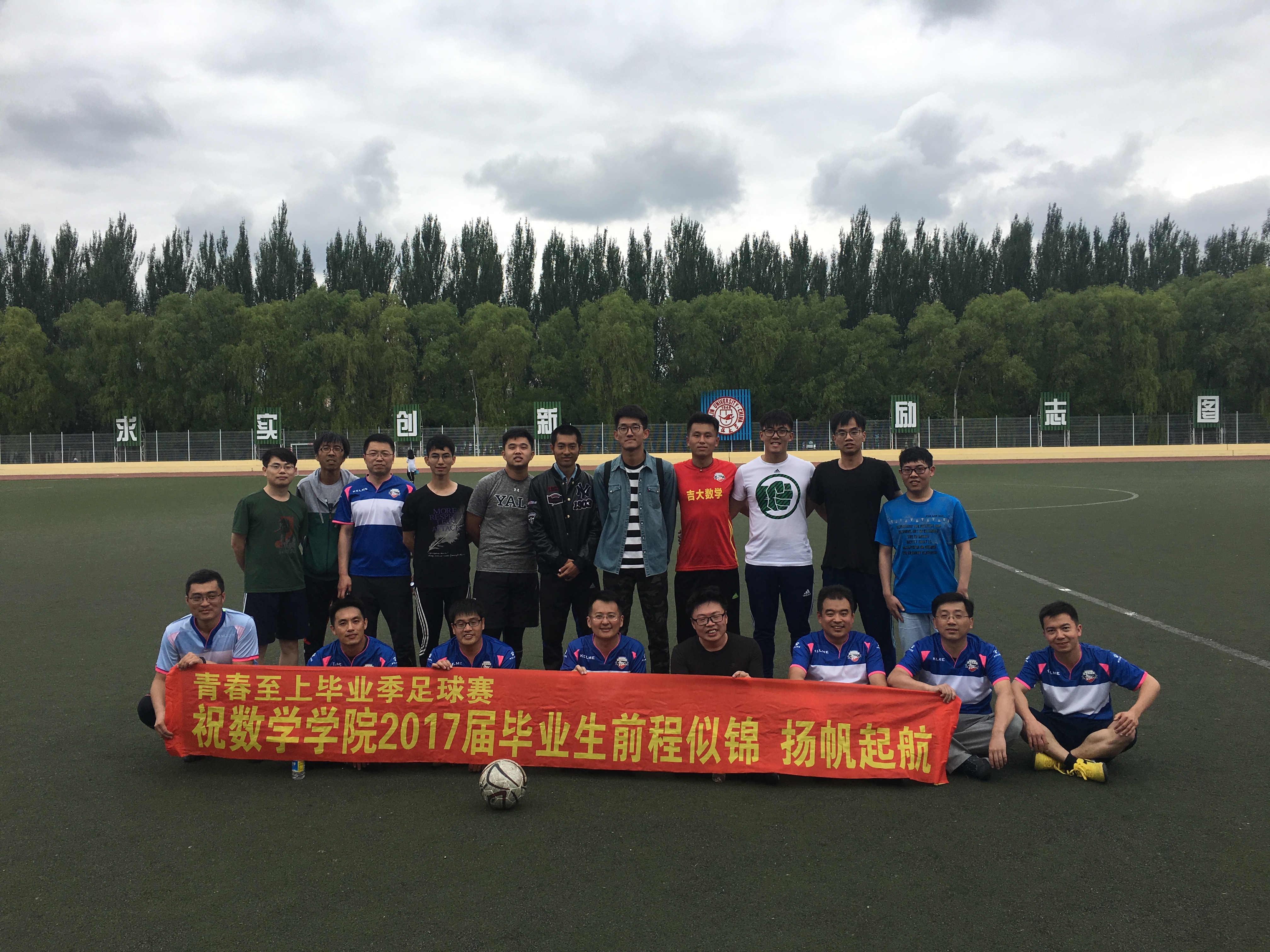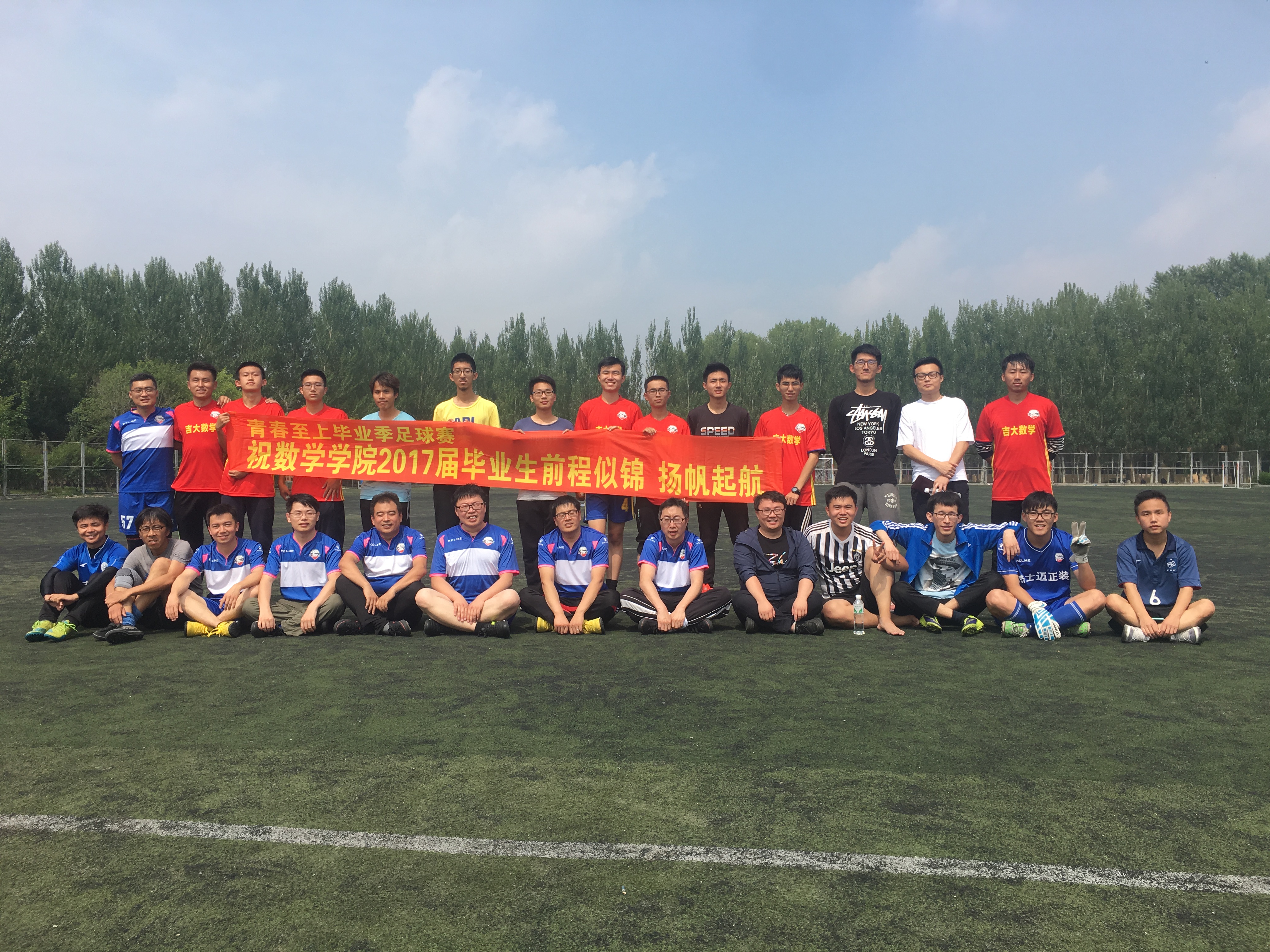 为了营造文明离校的良好氛围,增进学院足球爱好者的友谊,数学学院体育部举办了第二届毕业季足球赛,参赛队伍为一二三年级联队、四年级联队、教师队。