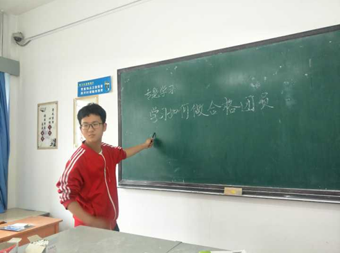 “如何才能成为一名合格共青团员” 主题班会带着这个问题拉开了序幕。在主题班会上班长侯志浩对“有理想,做一个仰望星空的人”,“立潮头,做一个勇于担当的人”,“不保守,做一个紧跟时代的人”,“肯付出,做一个甘于贡献的人”四个主题做了声情并茂的讲述。主题班会上,同学们认真听取讲述,积极思考并提出问题,相互交流,相互印证,每个人对如何成为一名合格的共青团员都有了深刻的理解和感悟。班会即将接近尾声,伴着歌曲《光荣啊,中国共青团》,同学们纷纷写下自己对如何成为一名合格的共青团员的理解。