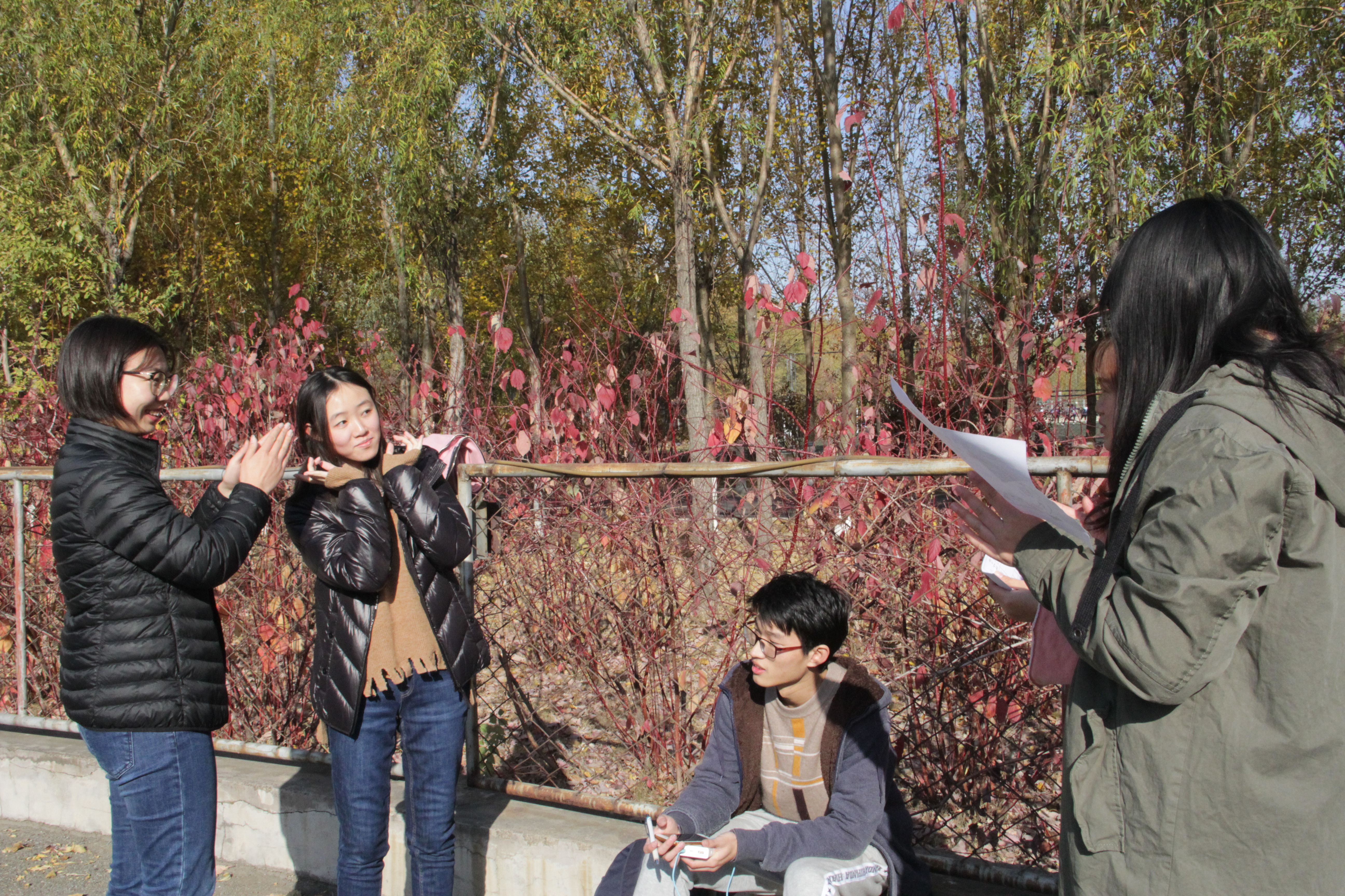 下午一点,伴随着文艺部同学的劲歌热舞,活动在一片热烈的掌声中拉开了序幕。文艺部的同学们衣袂飞扬,腰肢柔软,舞低杨柳,歌尽桃花,浑身洋溢着青春奔放的气息,带着强大的感染力。短短几分钟的热舞,带动了所有参赛人员和组织人员的激情。这次活动主要有三个环节。第一个环节为双赛道游戏比拼,游戏分为10个赛点,10组同学可根据地图,自己选择去的赛点顺序,每个赛点有两个游戏,只能选择其中一个游戏完成。根据游戏完成程度(全部完成 部分完成 未完成)获得相应的贴纸(5个 3个 1个)。完成所有赛点,即可前往最终场地。前三名到达最终场地的组按照来到的顺序额外奖励印章(10个 6个 4个)。每个赛点可以获得相应道具,集齐所有道具,到达最终场地,写下送给未来自己的一封信,有工作人员保管,一年后发回给同学。接下来所有人进行了击鼓传花游戏,被“选中”的同学有的讲笑话,有的唱歌,气氛十分热烈。最后游戏为撕手环比赛。每组按照贴纸数量获得相应比例手环,并派两个人参加撕手环游戏,最终根据存活时间,进行排名。得奖结果为:一等奖:三八幼儿园队。二等奖:OYY和炒面队。三等奖:妖精与蛇,世界和平,如果这都不算爱。