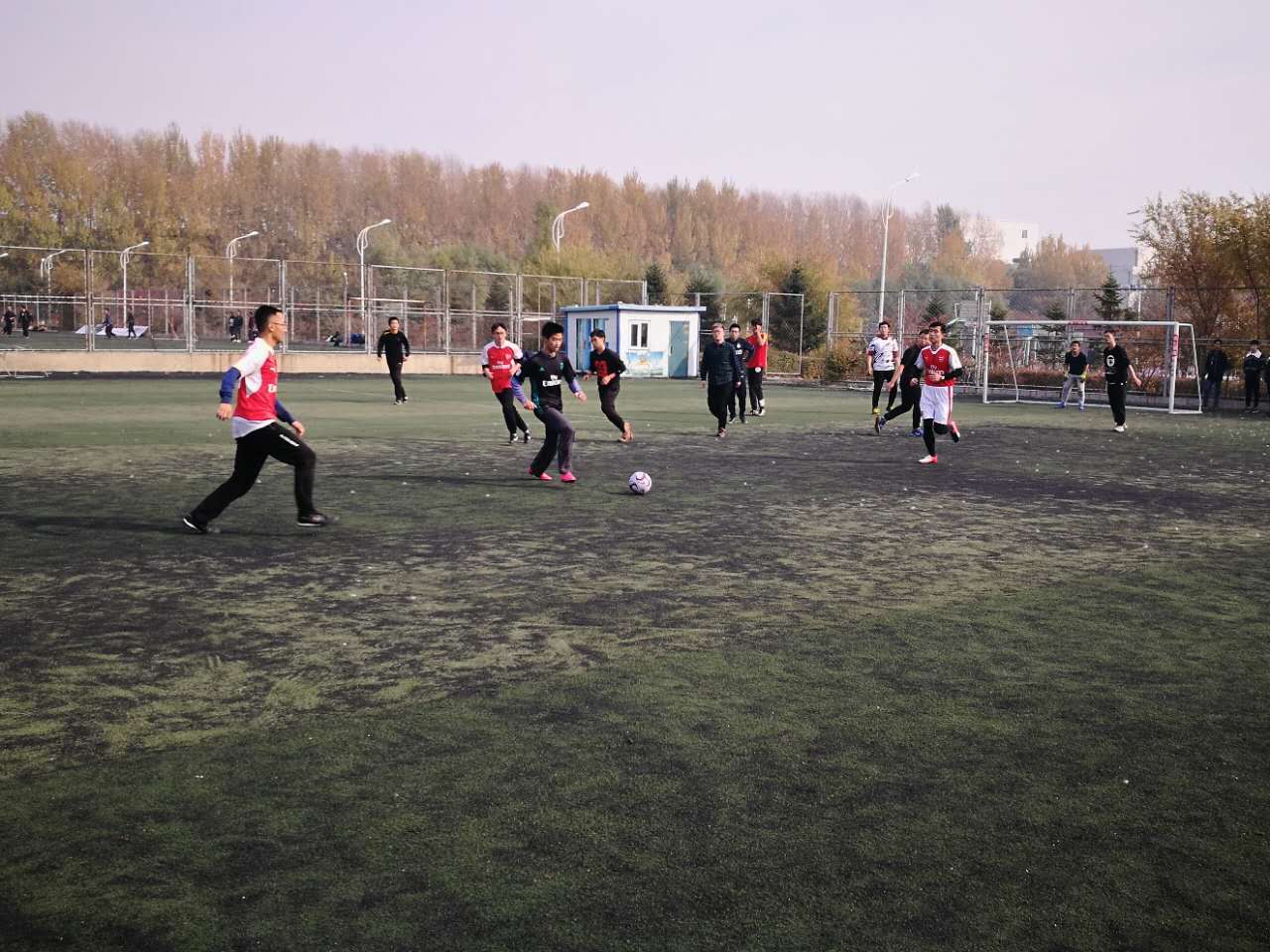 本次比赛共有27支参赛队伍,分成A,B,C,D,E,F,G七个小组,每组小组赛阶段采用单循环赛制,小组赛结束后统计积分,根据积分高低排名;取七组各小组第一及老师组小组第二进入八强淘汰赛阶段,最终决出冠亚季军。足球场上,队员们尽力拼搏,奔跑如离弦之箭,喊声振奋人心。倒了,站起来;伤了,无所谓;进了,欢呼了。青春的活力在足球场上迸发,没有拘束,没有忧虑,欢声笑语才是青春的主旋律。流汗了,又风干了;流血了,又凝固了。球场上除了和足球在一起奔跑,一切都不在乎。