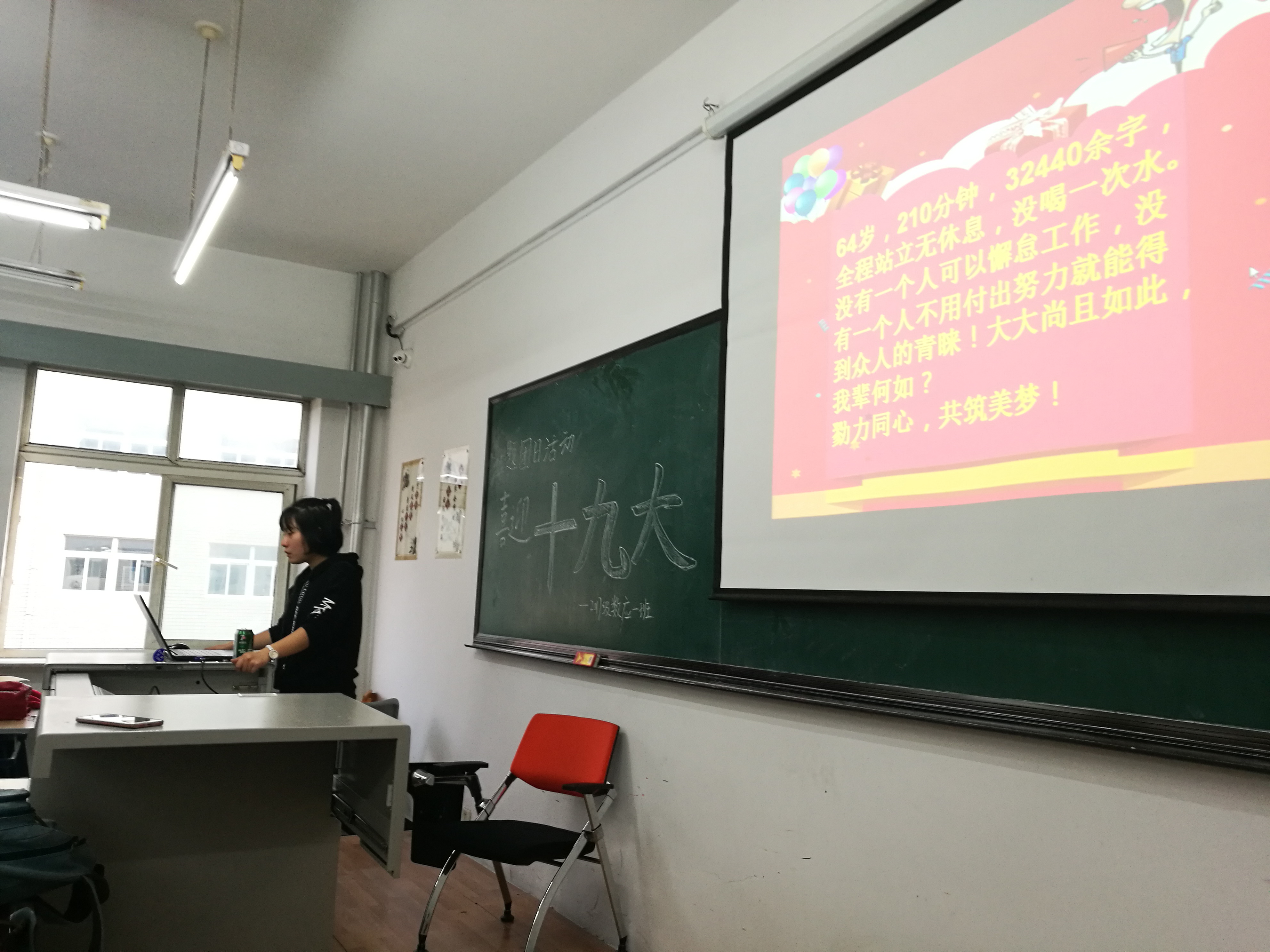 为了响应“青春喜迎十九大,不忘初心跟党走”主题宣传教育,增加同学们对十九大的认识与理解,数学学院2017级数应一班于10月20日下午4点在经信楼开展了“喜迎十九大”主题班会。