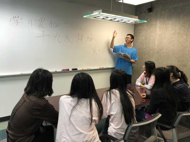 数学学院15级唐敖庆班为宣传我党最新精神,学习十九大内涵,于出国交流学习期间在佐治亚理工学院开展“青春心向党,莘莘学子情”系列宣讲活动,为广大外国师生带去十九大最新解读,并共同学习十九大精神,研读十九大报告。