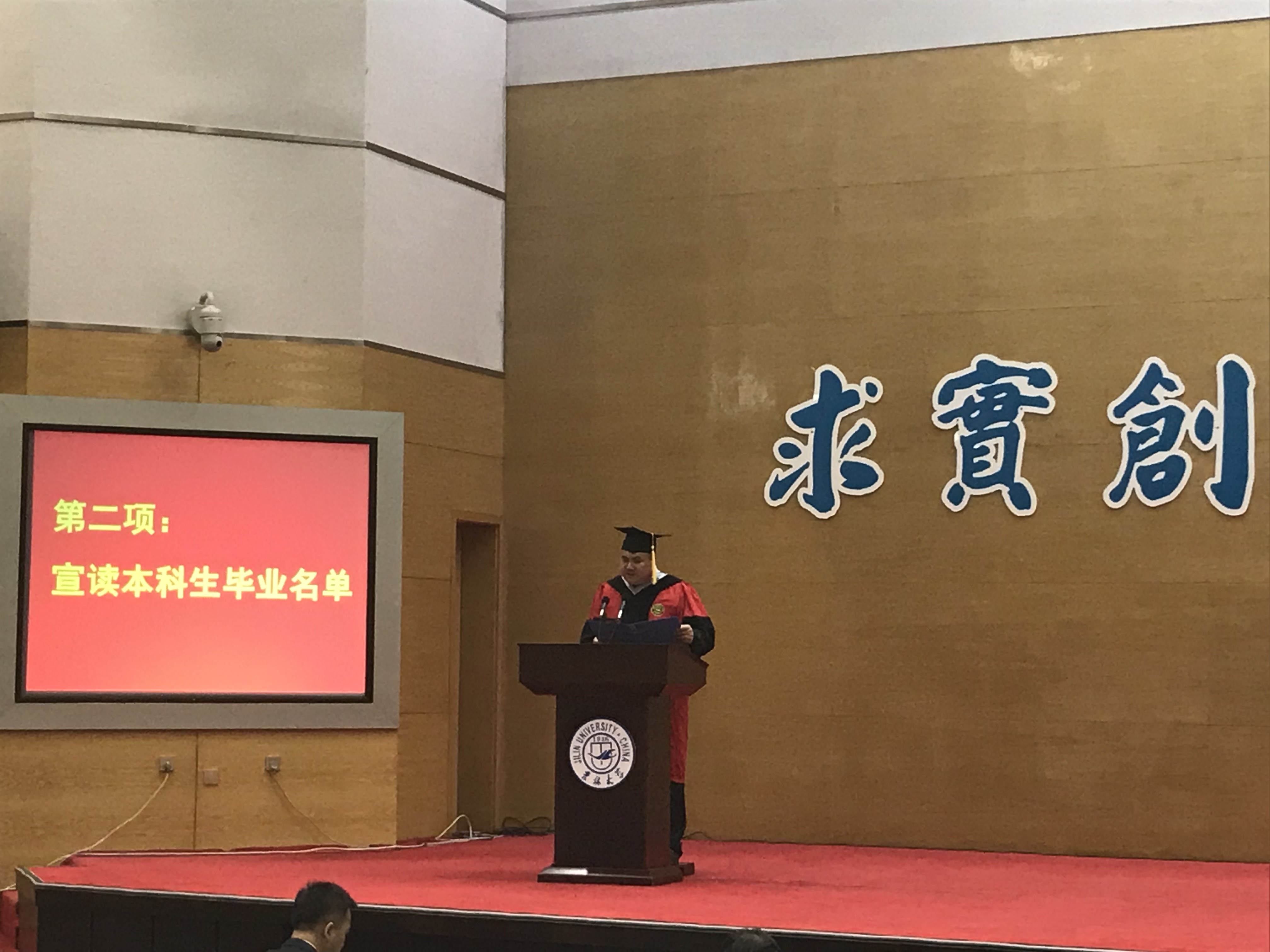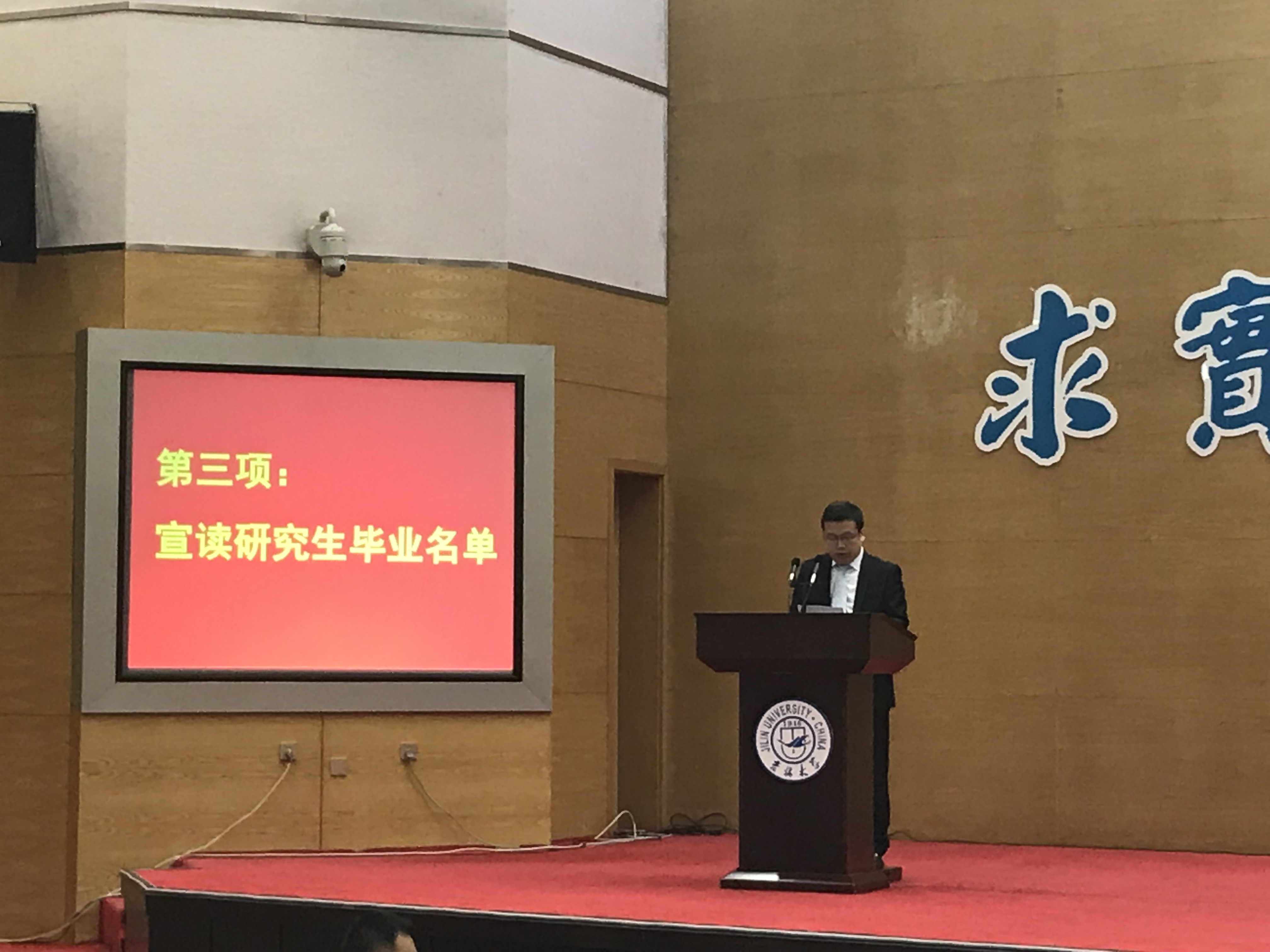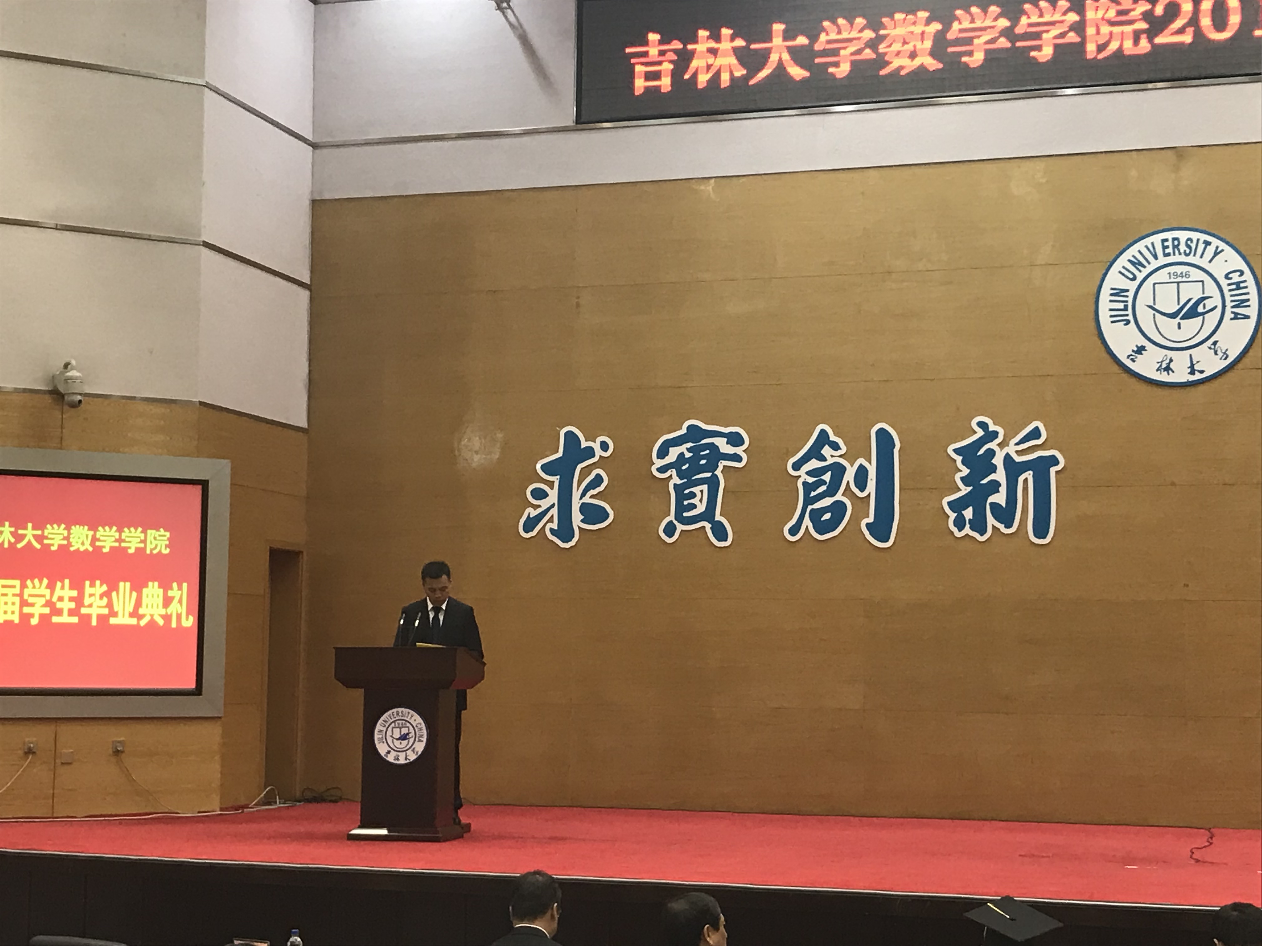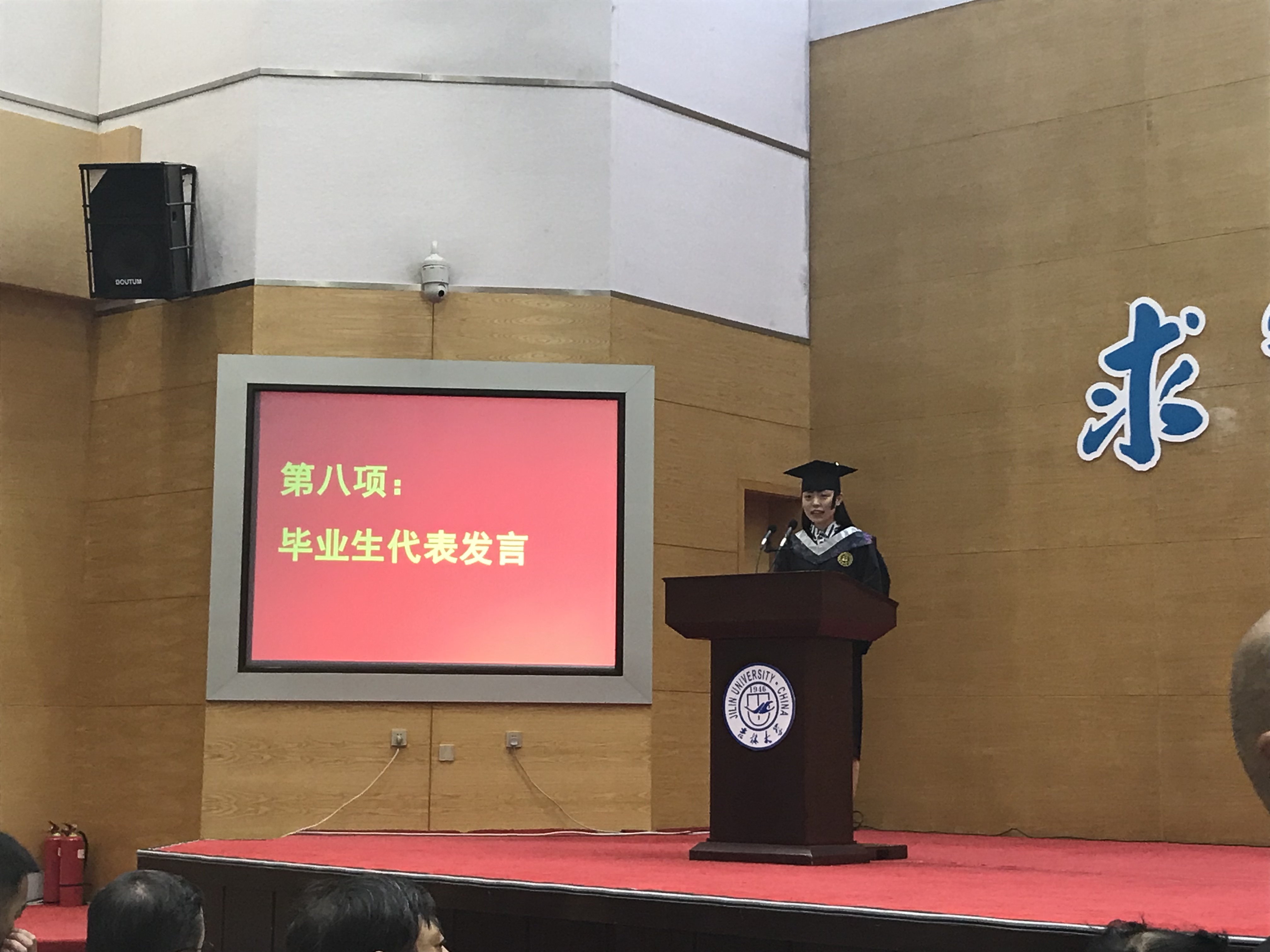 随后,吉林大学十佳大学生高溪远同学代表毕业生发言,韩玉柱副教授作为教师代表为毕业生送上祝福。最后,李辉来院长为毕业典礼致辞,向2018届毕业生提出了殷切希望,希望从吉大走出去的学生,能以更加博大的胸怀和包容的精神,能以改变世界的梦想力量和魂魄,成为伟大时代宏伟事业的缔造者和开拓者!