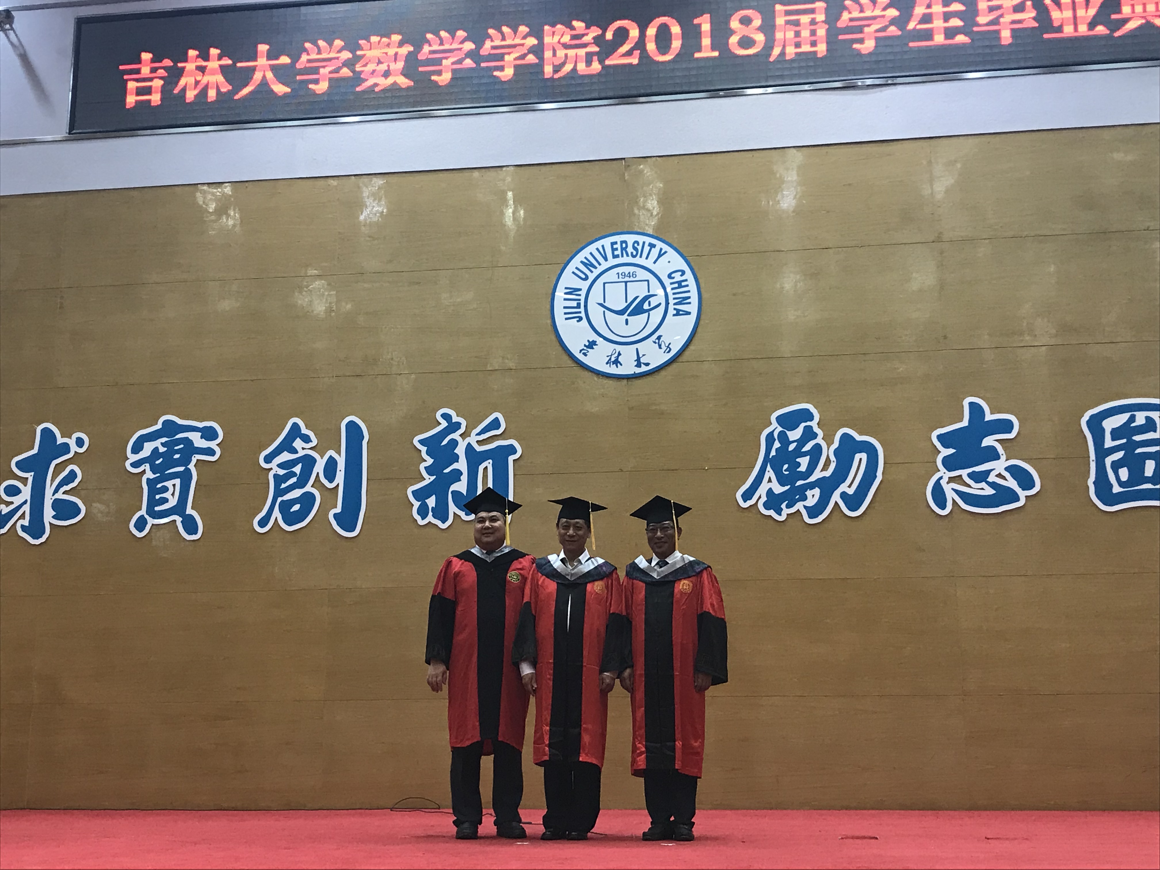 接着,数学学科学位评定委员会主席高文杰教授、副主席李辉来教授及王德辉教授共同为毕业生授予学位并颁发学位证书。