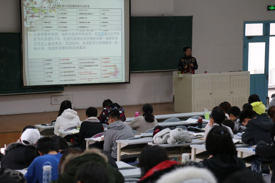 随后,韩老师 着重介绍了关于保险精算的学科以及关于精算师资格的考试。目前主要的精算考试分为北美寿险,北美非寿险与中国精算师考试。其中北美精算师的考试SOA要求完成五门初级考试(Exam P, FM, MFE, MLC, C),三门由北美精算师协会认可的大学课程(VEE),一门网上教学课程(FAP)并参加一个为期半天的研讨会(APC),才能获得准会员资格,也即我们说的准精算师的资格。而目前北美精算师协会认可的VEE课程的高校就包括了吉林大学。而中国精算师考试分为两部分,首先需要考取准精算师,准精算师部分由把门考试科目组成,每门考试均为3小时笔试。当取得准精算师资格证后,才可继续进行精算师的考试,精算师部分分为寿险与非寿险两方向,每门考试均为4小时,考生可根据自己的情况自主选择参加寿险或非寿险。