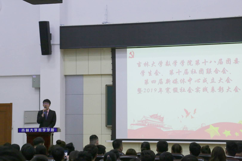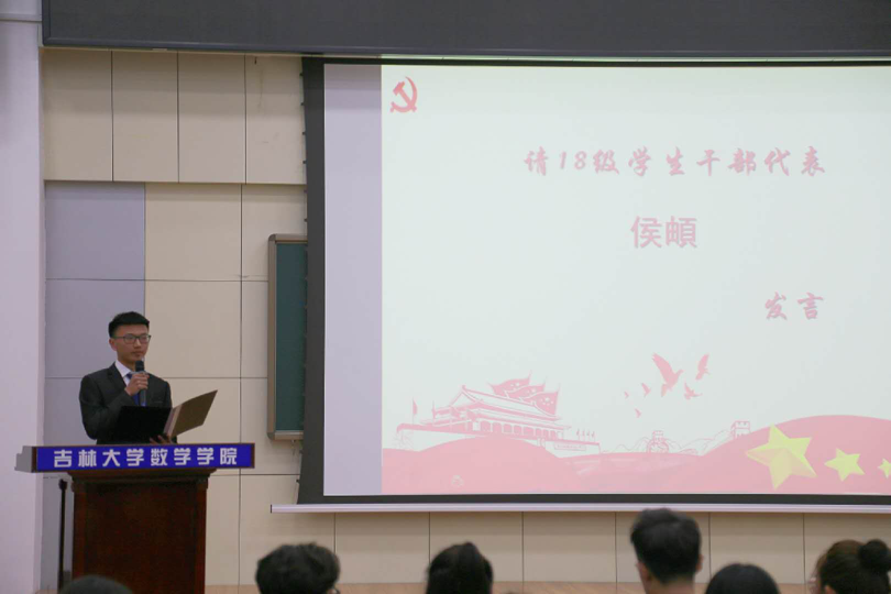 学生会主席邱韵进行了发言,代表全体学生干部感谢了学院领导、老师及全体同学对团学社媒所有工作的支持和配合。邱韵讲到,数学学院团学社媒是学院联系学生的桥梁和纽带,是切实为同学们服务的学生组织团体,希望全体学生干部领会团中央学校部发布的“学生干部自律公约”的内容,努力建设充满朝气、干净纯粹的组织文化,营造务实担当、不怕困难、勇于创新和干净纯粹的工作氛围。接着2018级的学生干部代表侯頔进行了发言,侯頔代表团学社媒的新成员感谢了学院领导、老师对同学们对关怀,表达了进入学生组织的激动心情并对未来的学生工作作出了承诺和展望。