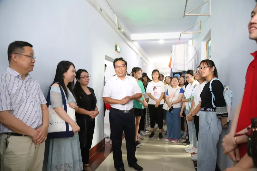 为了解2019级新生情况,帮助新生尽快适应新环境,8月25日下午,数学学院院长李辉来,副院长史少云,副院长张然,党委副书记兼纪委书记王欢,党委副书记兼副院长范庆文以及辅导员李庚、曹馨月来到大学生第二公寓和大学城第三公寓走访看望新生。