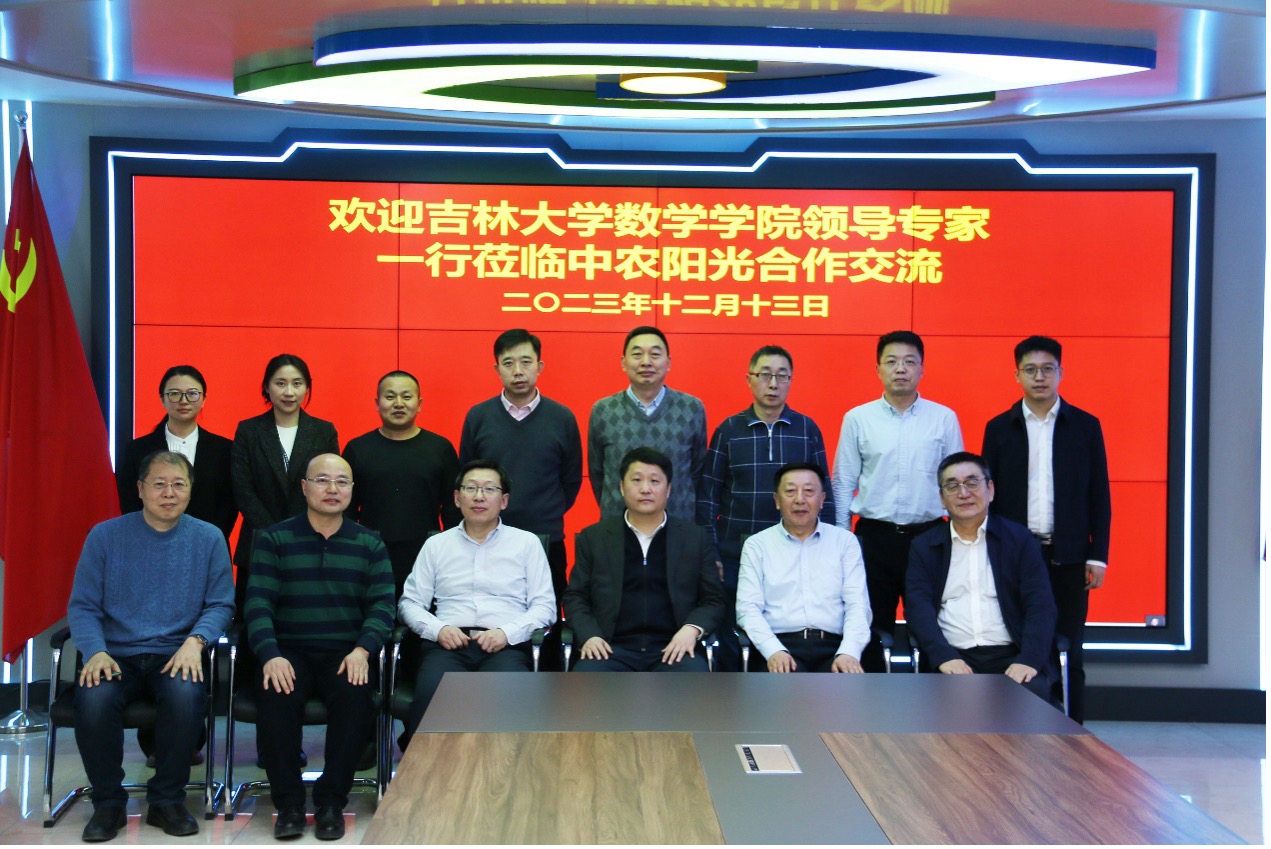 12月13日,beat365中国官方网站一行8人前往中农阳光数据有限公司并举办座谈会。中农阳光数据有限公司董事长赵明,数学学院党委书记王春朋,党委组织部正处级组织员钟绍峰等参加会议。