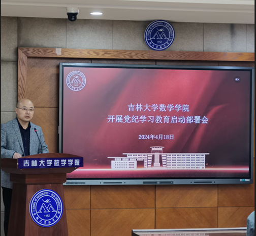 2024年4月18日下午,数学学院党委在数学楼一楼报告厅召开党纪学习教育工作启动部署会议,会议由学院党委书记王春朋同志主持,学院领导班子成员、党委委员、党支部书记、辅导员、行政教辅教工党支部全体党员参加了会议。