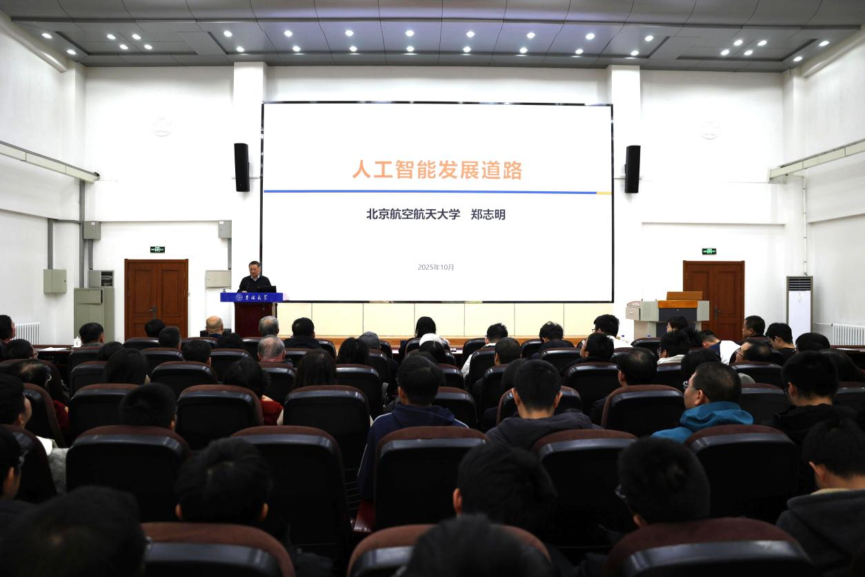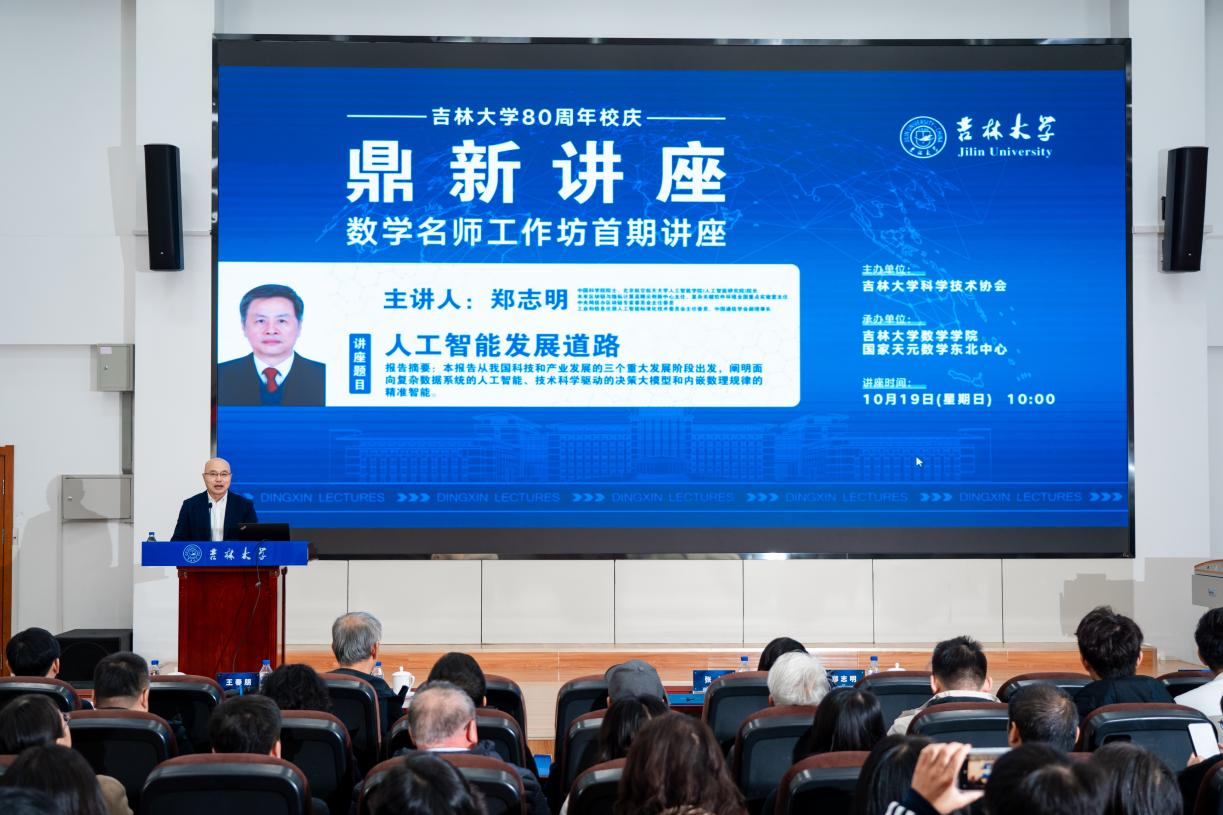 10月19日上午,教育部高等学校数学专业类教学指导委员会主任、北京航空航天大学原副校长郑志明教授做客吉林大学鼎新讲座暨数学名师工作坊,并以“人工智能发展道路”为题作数学名师工作坊首场名师讲座。吉林大学党委常委、副校长张然出席讲座,并为郑志明教授颁发“鼎新讲座纪念牌”。数学学院院长王春朋主持讲座。