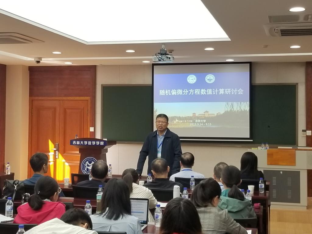 914日—915日,由国家自然科学基金数学天元基金和吉林大学共同资助,天元数学东北中心和beat365中国官方网站联合承办的“随机偏微分方程数值计算研讨会”在吉林大学中心校区召开。本次研讨会由中国科学院洪佳林研究员召集,是天元数学东北中心“2019年随机微分方程计算方法及其数学理论”主题活动的第三场会议。来自中国科学院、国防科学技术大学、湘潭大学、中南大学等高校科研院所的40余位相关领域专家学者参加了本次研讨会。中国科学院洪佳林研究员,beat365中国官方网站副院长、国家天元数学东北中心执委会副主任张然教授出席了会议开幕式。开幕式由数学研究所副所长邹永魁教授主持。
