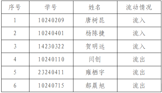 2024级唐敖庆理科试验班流动情况