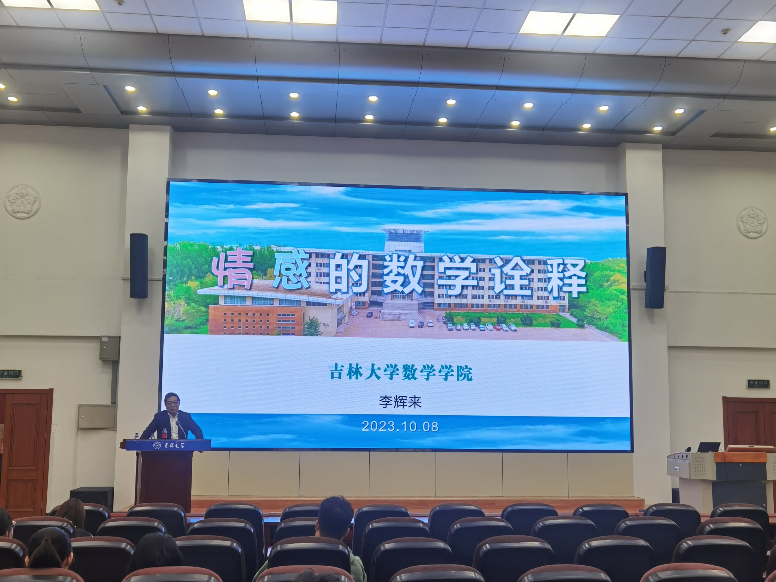 10月8日下午15:00,数学学院在数学楼二楼报告厅成功举办了数学素养讲座:情感的数学诠释。本次讲座由数学学院李辉来教授主讲,学院党委副书记陈续升出席并主持会议,研究生辅导员张轶群和2023级全体研究生参加了本次会议。