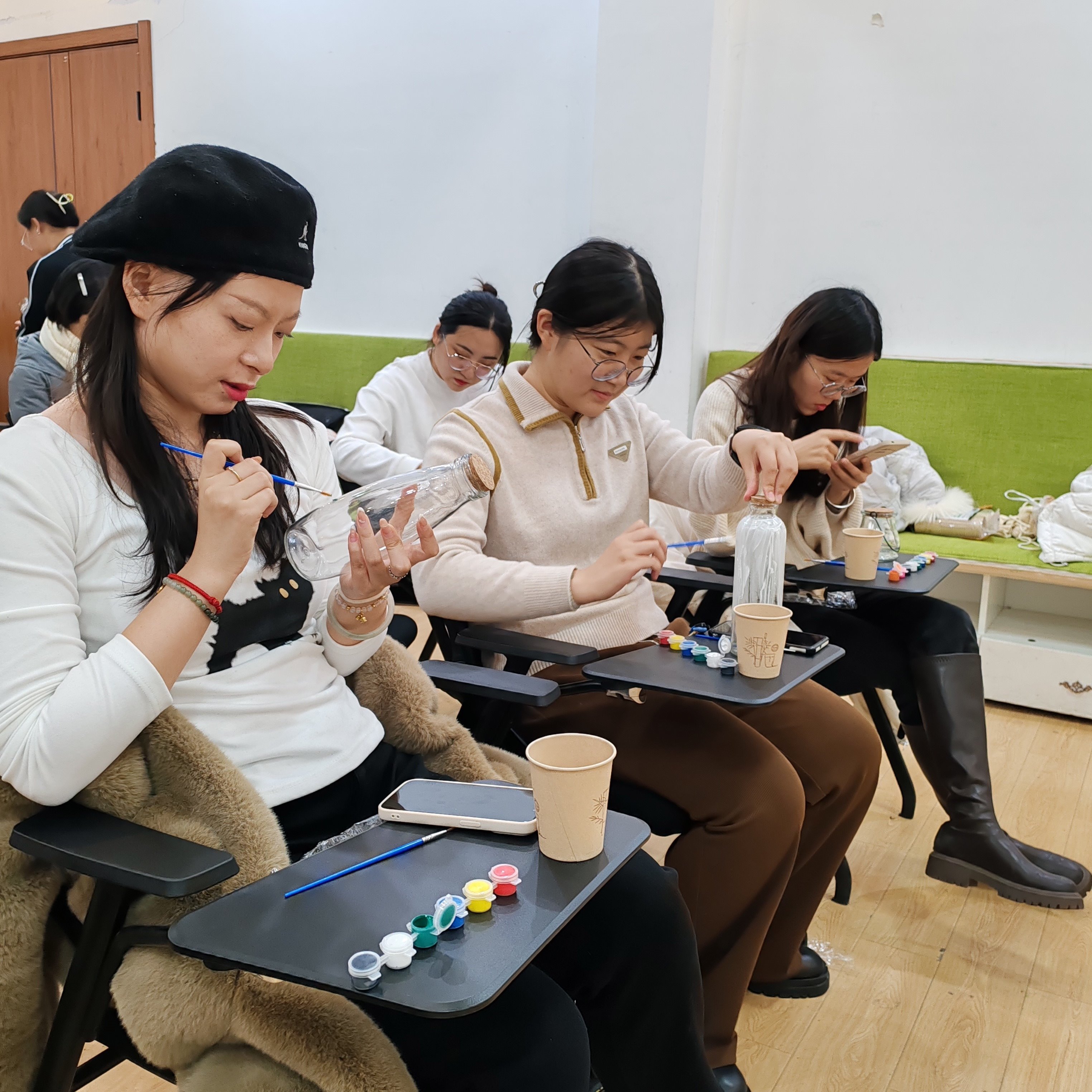 本次活动为同学们提供了一个独特的表达情感和交流思想的机会,活动过程充满了轻松与愉悦的氛围。在本次活动中,同学们以玻璃瓶为载体,在绘制色彩斑斓的画面的同时表达了深藏心底的真挚情感,共同谱写着我们校园生活中美好的一笔。