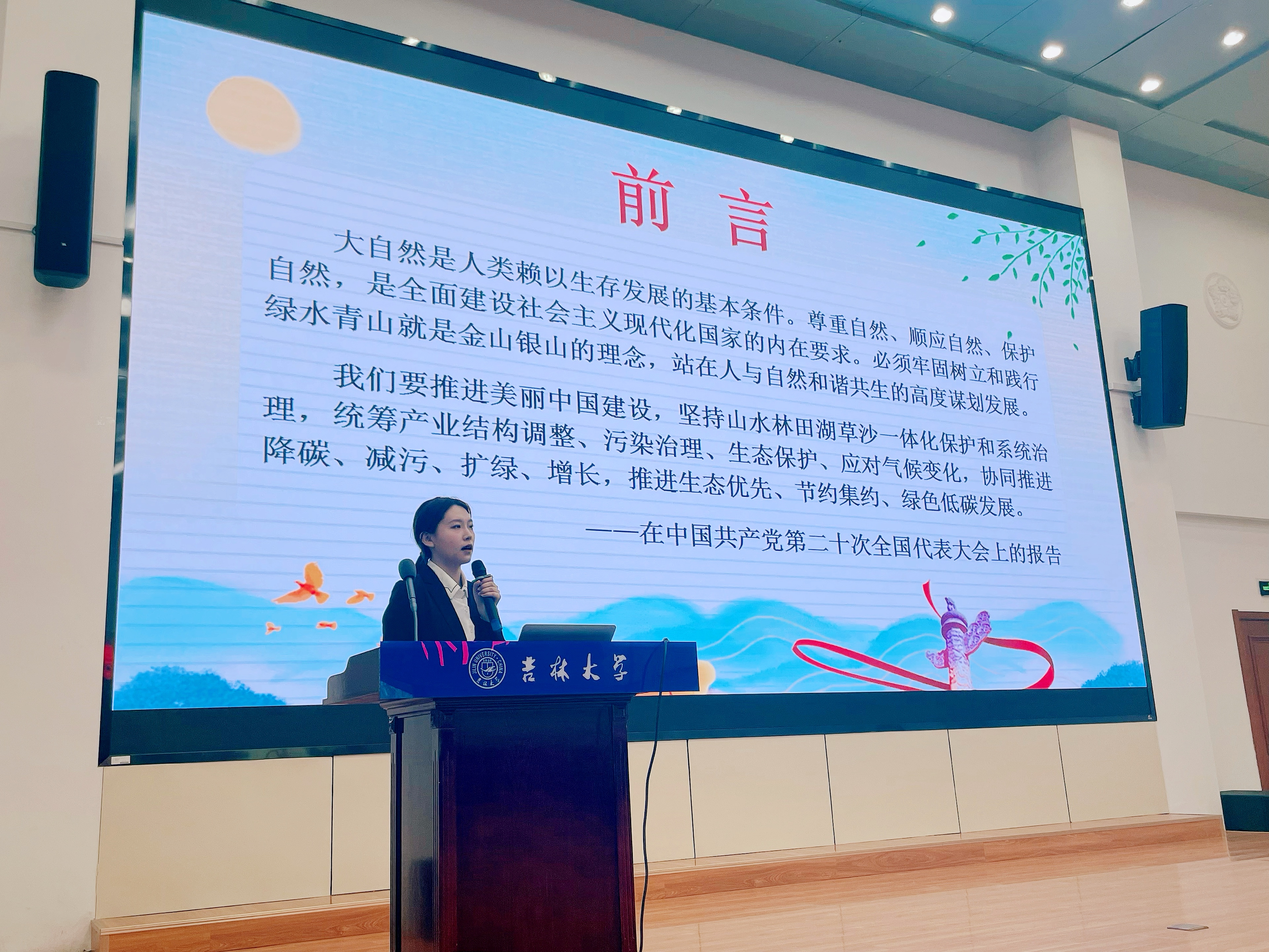 丁一讲师以习近平生态文明思想所集中体现的“十个坚持”为基础,为大家讲述了我国在生态文明建设方面的生动事例。在此过程中,同学们深刻领会了生态环境保护、绿色发展和高质量发展之间的关系,明确了生态环境是影响高质量发展的因素,良好生态环境是检验高质量发展的标准,而绿色发展是实现高质量发展的路径。丁一讲师鼓励大家要学习贯彻习近平新时代中国特色社会主义思想,并且将学习两会精神与贯彻落实党的二十大精神结合起来,为全面建设社会主义现代化国家、全面推进中华民族伟大复兴展现青年担当。接下来,吉林大学博士生讲师团将继续走进研究生培养单位,引导广大研究生与祖国同行,与时代共进,感受国家发展成就,为实现中国式现代化贡献青春力量。