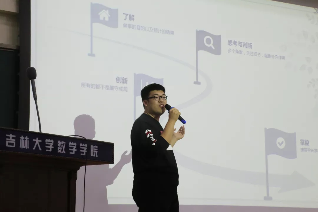 数学学院于2019年10月27日晚6时,在数学楼二楼报告厅成功开展骨干训练营系列培训第二次活动。训练营主题为“我思故我在——勤于思考”,由数学学院团委副书记兼社团联合会主席付豪主讲。