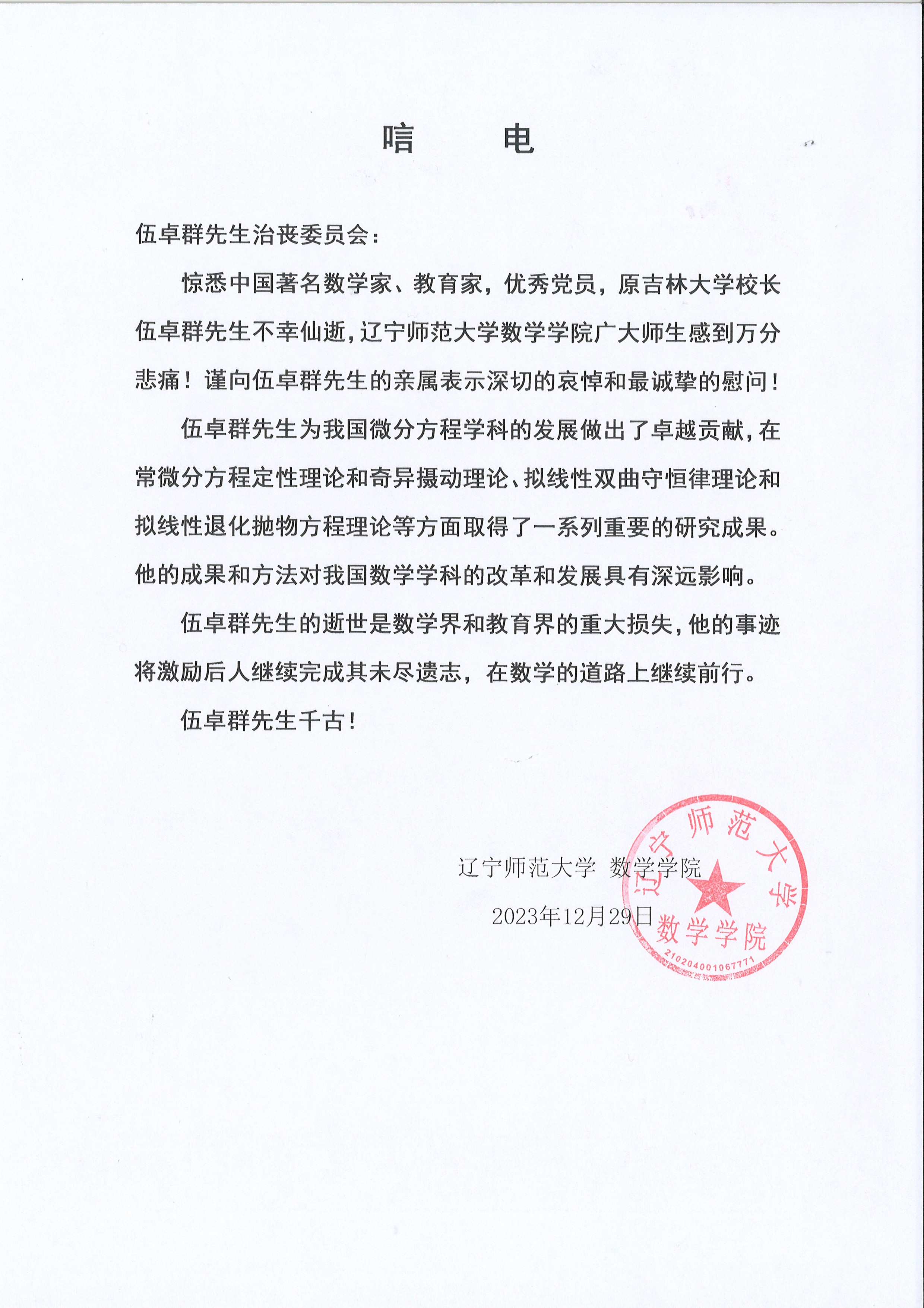 当前位置: 首 页 - 校友之家 - 沉痛悼念伍卓群先生 - 正文