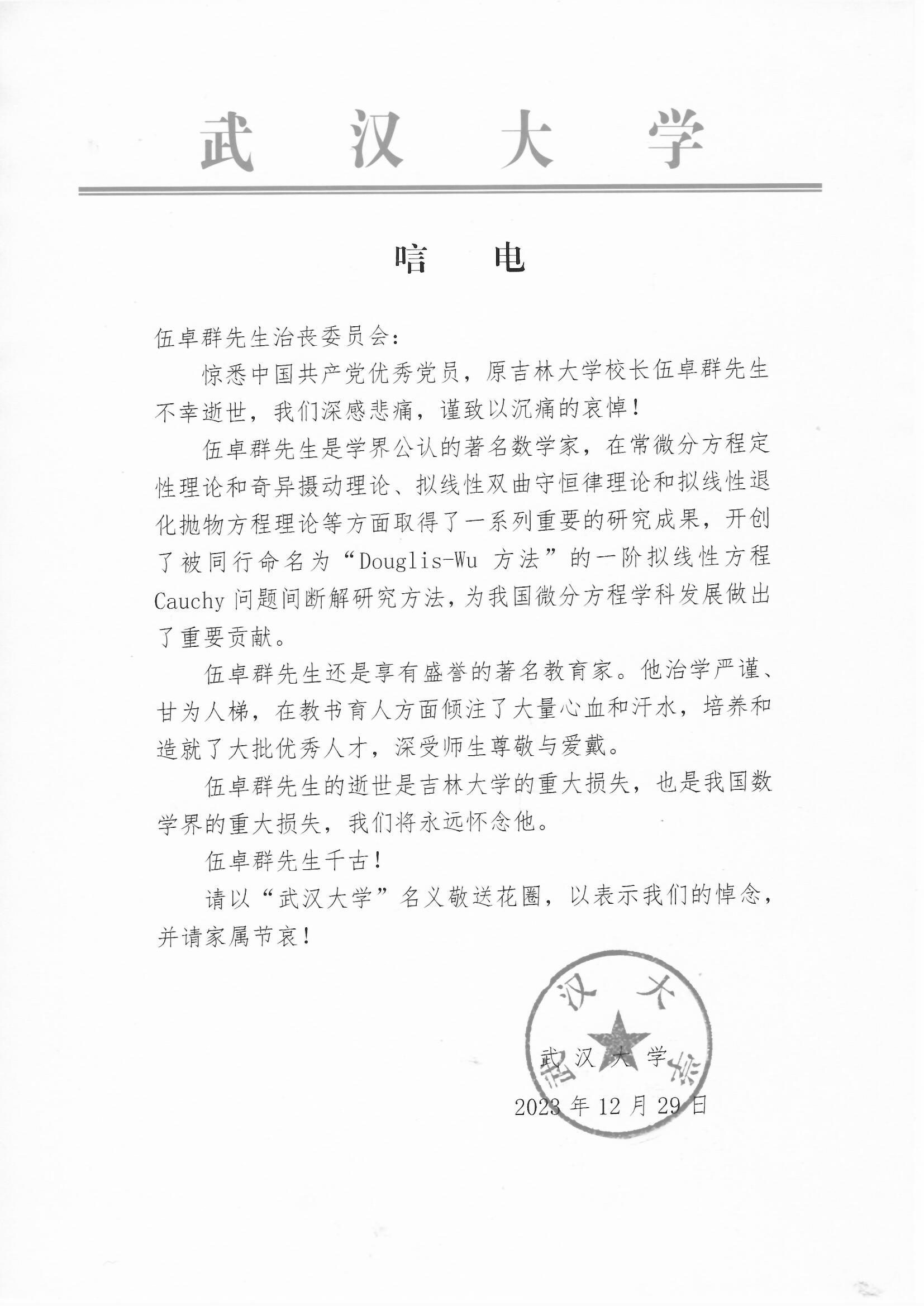 当前位置: 首 页 - 校友之家 - 沉痛悼念伍卓群先生 - 正文