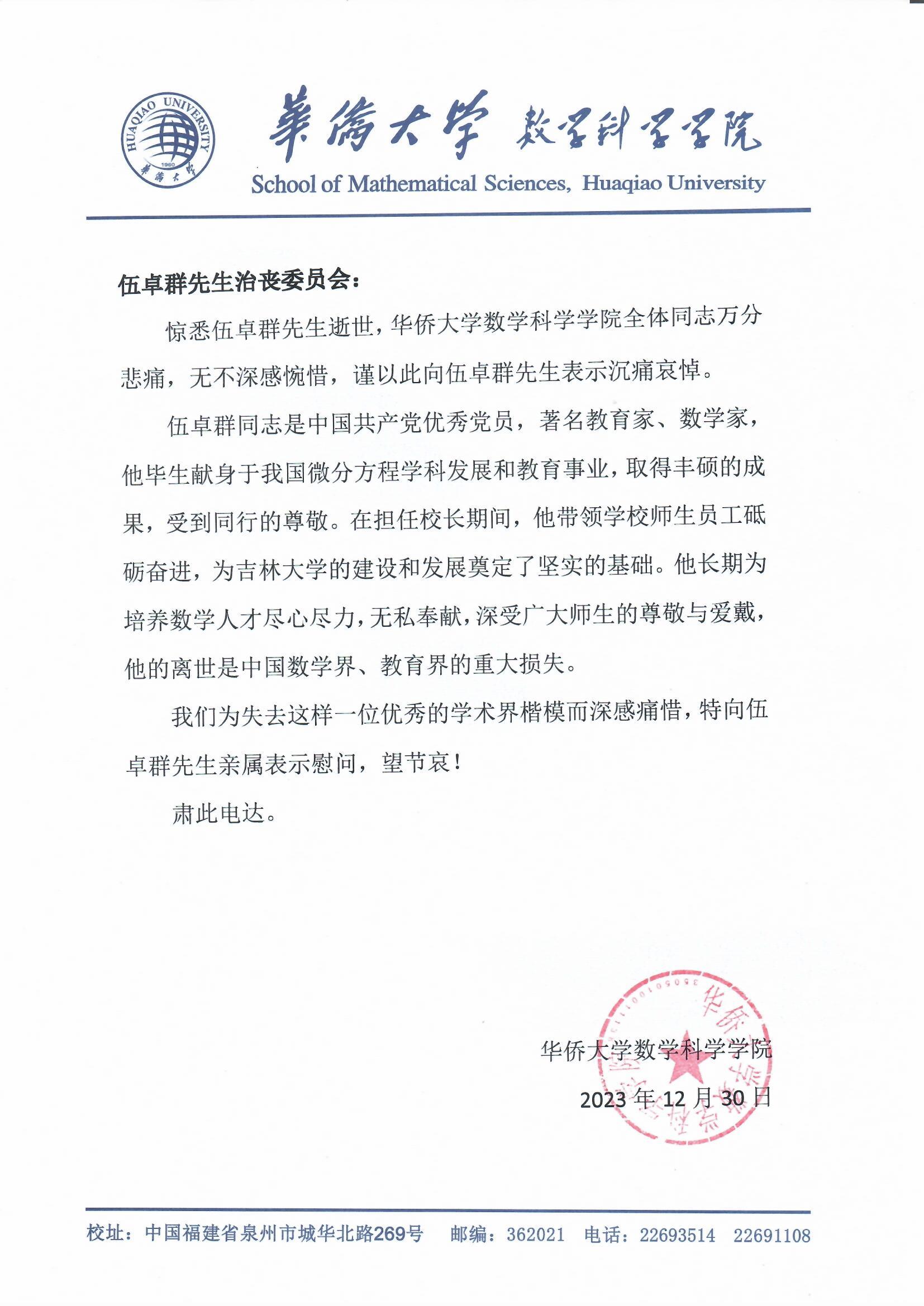 当前位置: 首 页 - 校友之家 - 沉痛悼念伍卓群先生 - 正文