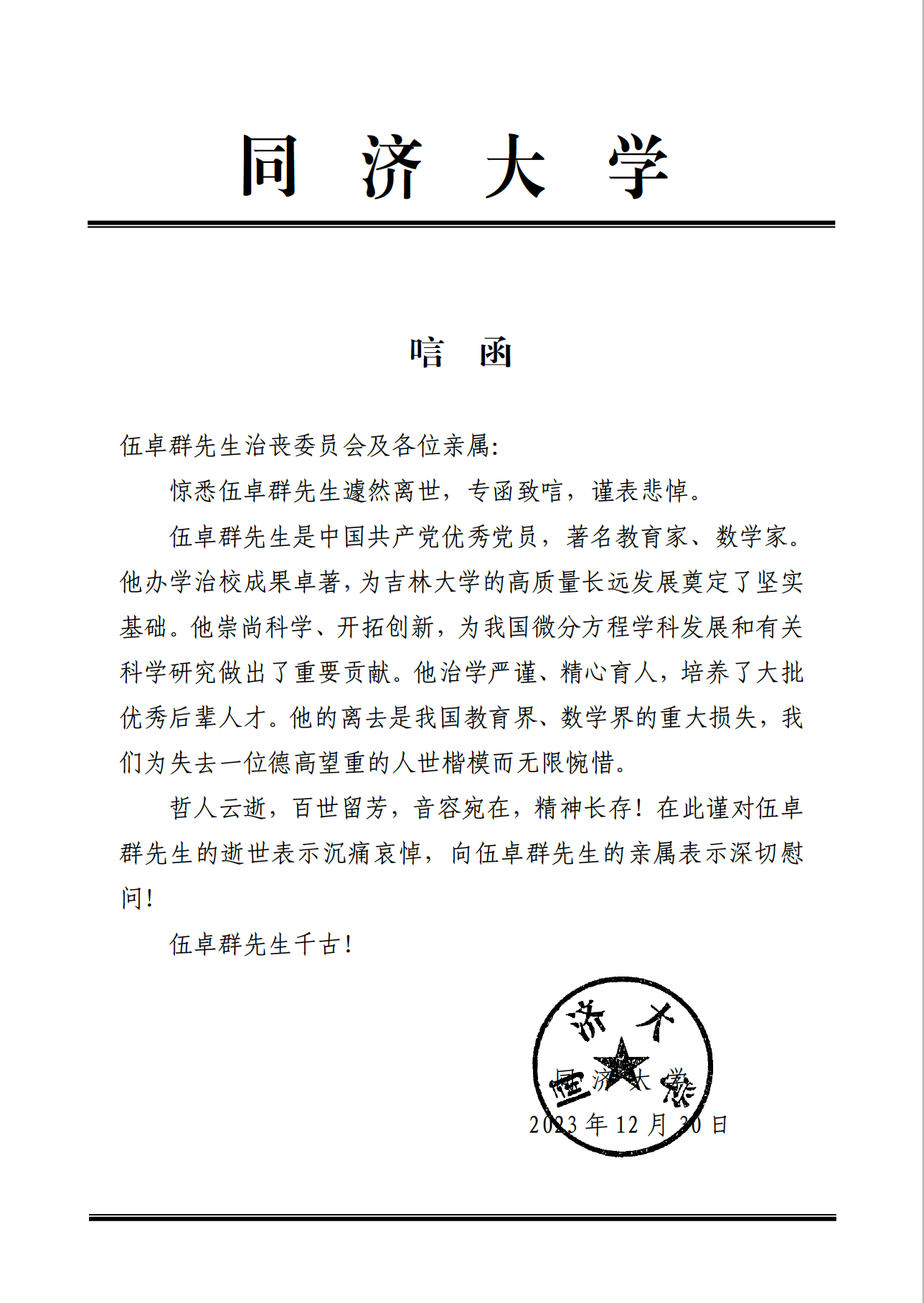 当前位置: 首 页 - 校友之家 - 沉痛悼念伍卓群先生 - 正文