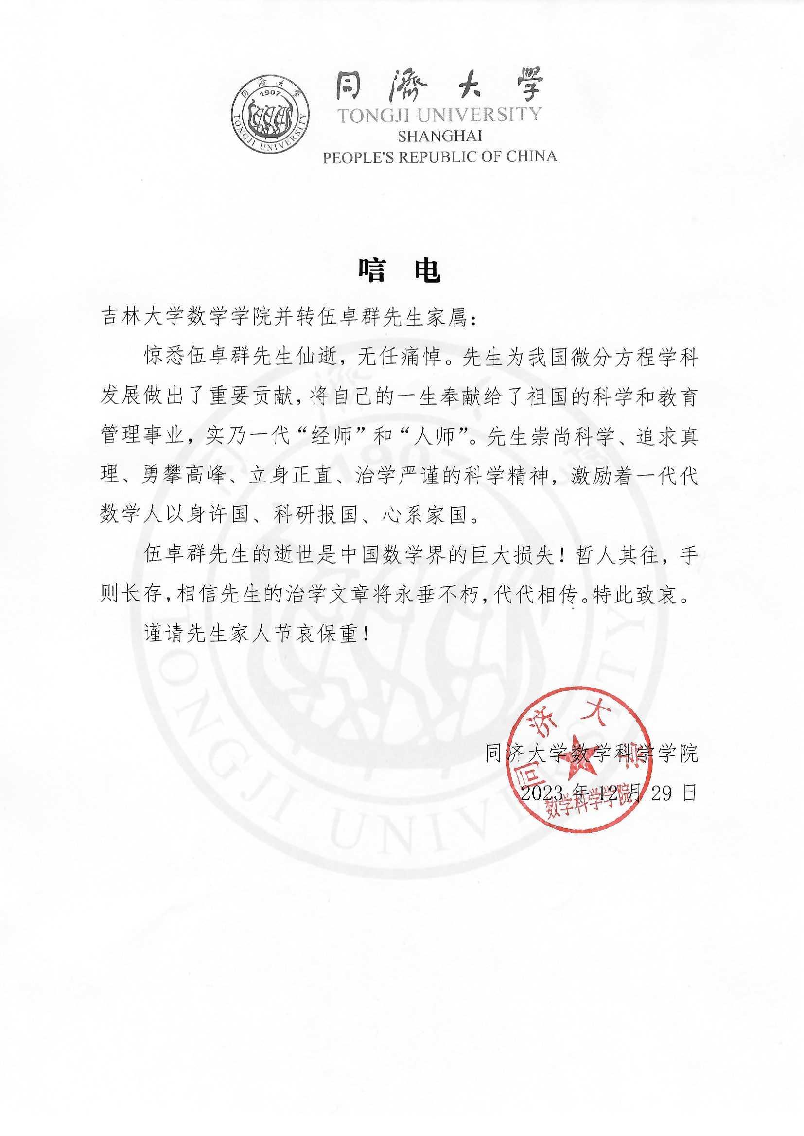 当前位置: 首 页 - 校友之家 - 沉痛悼念伍卓群先生 - 正文